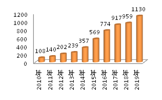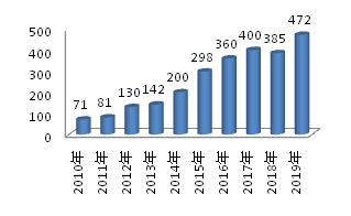 2010-2019年參展企業(yè)數(shù)量增長趨勢