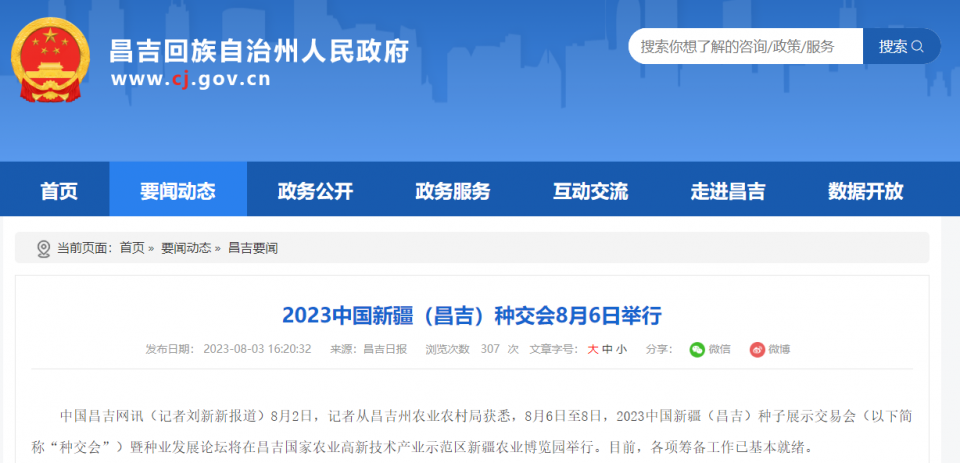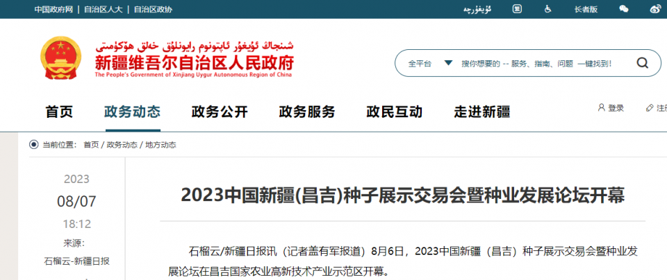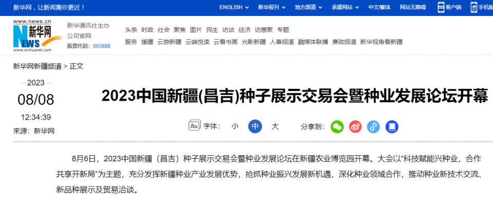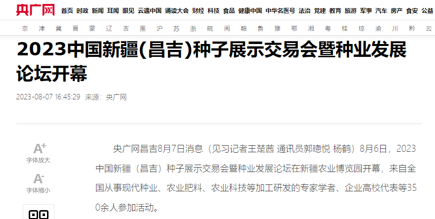 2023中國新疆(昌吉)種子展示交易會部分媒體報道