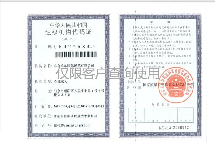 您當(dāng)前的位置:首頁(yè) » 榮譽(yù)資質(zhì) » 北京鴻爾國(guó)際展覽有限公司