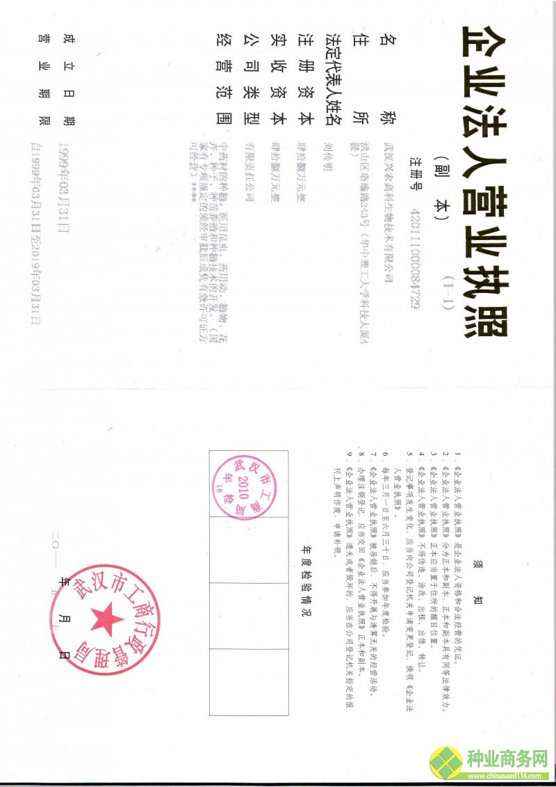 榮譽(yù)資質(zhì) 武漢興農(nóng)高科生物技術(shù)有限公司營(yíng)業(yè)執(zhí)照