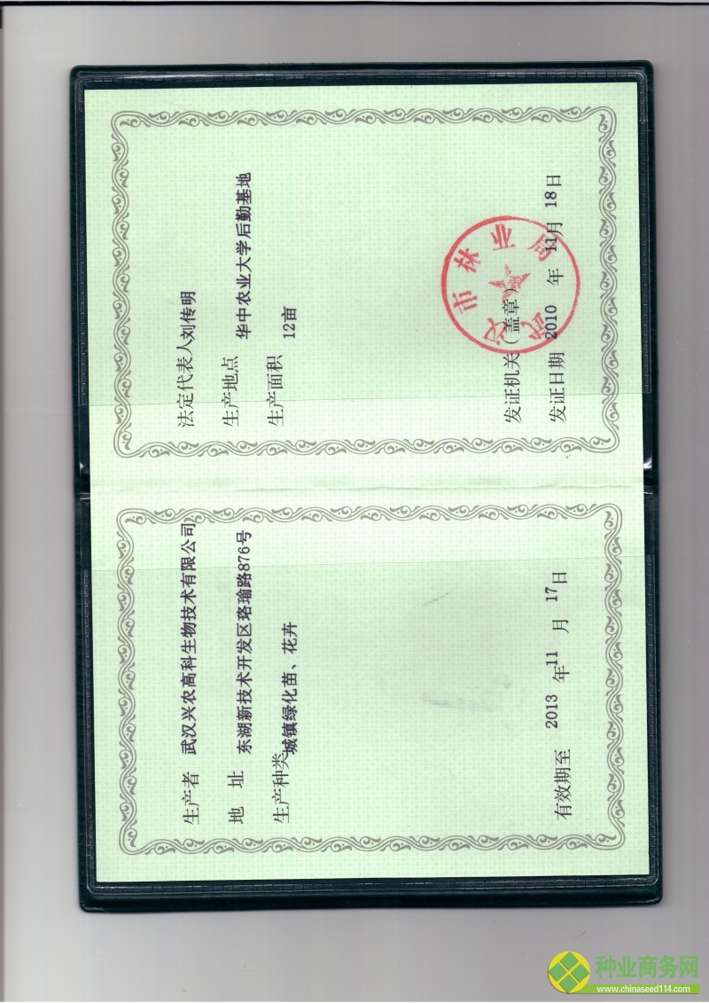 | 發(fā)證機(jī)構(gòu): | 武漢市林業(yè)局 | 發(fā)證時(shí)間 : | 2010-11-18 |