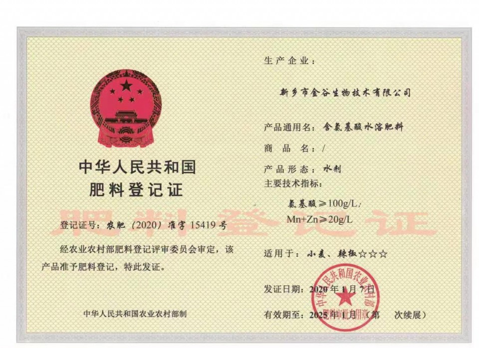 您當(dāng)前的位置:首頁 » 榮譽(yù)資質(zhì) » 中華人民共和國肥料登記證