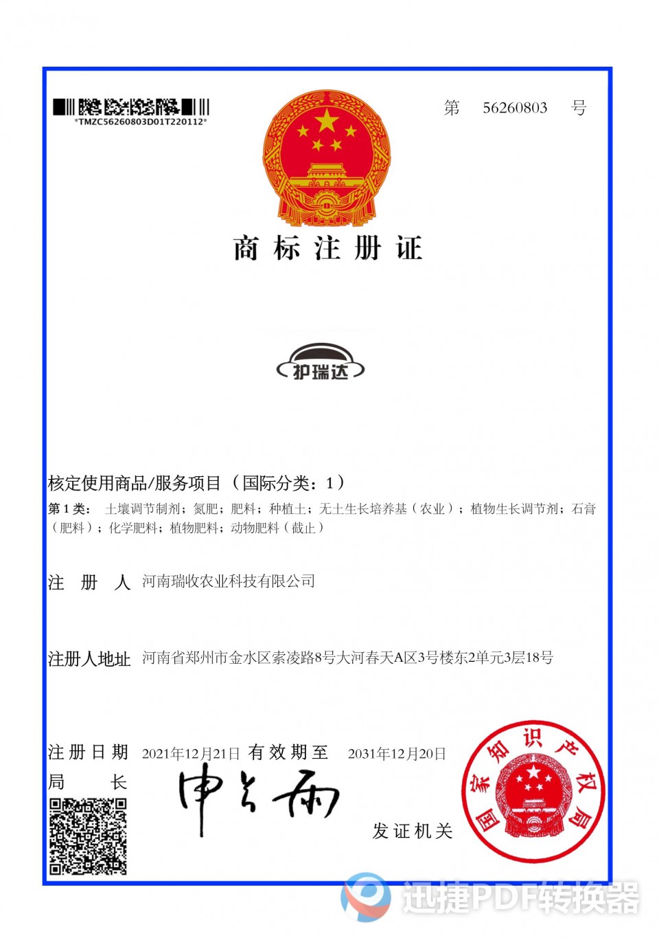 榮譽(yù)資質(zhì) 護(hù)瑞達(dá)商標(biāo)注冊(cè)證