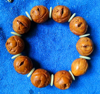 近年來,廣大文玩核友、佛界人士、收藏愛好者,把玩、收藏猴頭核桃工藝品的熱情不斷持續(xù)升溫。今年恰逢農歷丙申猴年,更激起了一波追捧猴頭核桃的熱潮。猴年伊始,許多愛好者在微信圈曬寶,為自己淘來的一批、一串甚或僅僅一粒猴頭核桃精品,而竊喜、而顯擺。猴年喜得象征著聰明、活潑、機敏、忠貞、勇敢的瑞猴佛珠,屬猴者似得一同伴,自然是吉祥之物;不屬猴者得之,也可驅邪護身,希冀騰達、安康。