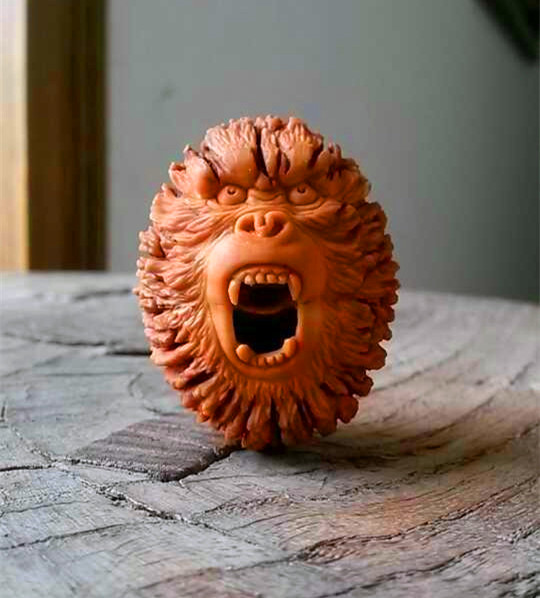 1. 果形圓,更適宜表現(xiàn)圓潤、豐盈、飽滿的題材。雖然美國猴頭核桃果形能達(dá)到正圓或矮樁的也是極少數(shù),但總體上要比目前大量采用的核雕原料——橄欖核圓得多。稍加留心可以看出,橄欖核雕的人物形象大多偏于瘦削型。而美國猴頭核桃正好可以彌補(bǔ)橄欖核的不足,非常適用于雕刻圓潤、豐盈、飽滿的題材,例如壽星、彌勒佛、不倒翁、淑女、萌娃、美猴王、猴寶寶等,人物形象更加雍容、大度、富貴、可愛。