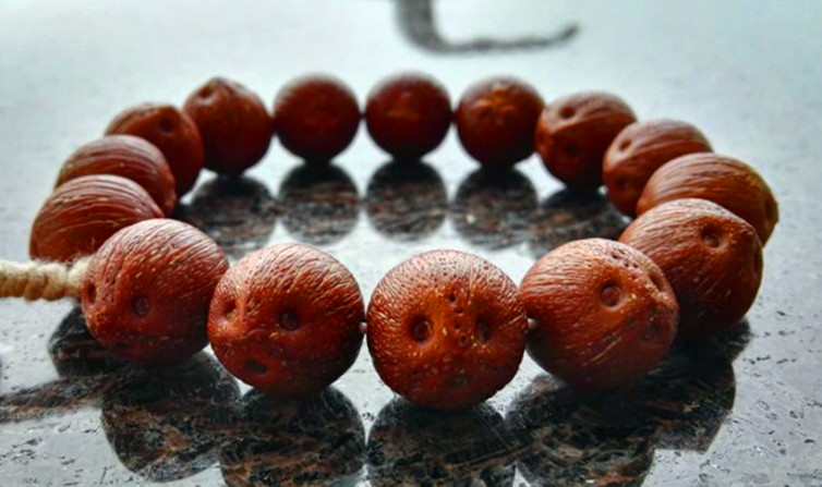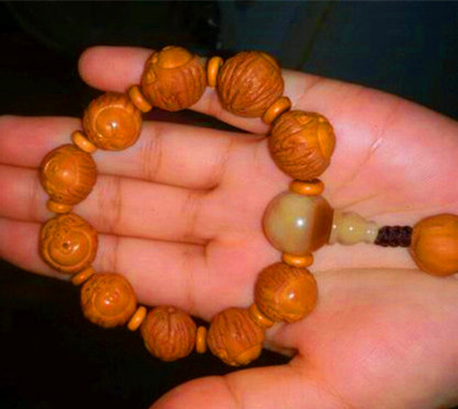 2. 猴頭核桃是大自然賦予的天然種籽,具備作為菩提子的所有特征。據(jù)《菩提問道——菩提子串珠的收藏和把玩》一書介紹,作為佛家修行誦經(jīng)輔助工具的串珠,其菩提子應(yīng)具有以下4個特征:(1)菩提子都是天然的種籽或者果實;(2)原籽都有形態(tài)各異的紋理或特殊的形狀;(3)大多數(shù)菩提子都可以通過深加工得到三四個衍生品種;(4)把玩一段時間后,顏色和光澤都會發(fā)生變化,往往會變得溫潤如玉。顯而易見,小猴頭核桃完全具備上述4個特征。另外,如果以上描述的菩提子的4個特征是佛界普遍認(rèn)可的話,那么目前市場上大量的木珠、玉珠、水晶、瑪瑙、琥珀等珠串制品,就只能作為飾物、工藝品、藝術(shù)品,供普通大眾佩戴、把玩、鑒賞,可能就與佛無緣了。當(dāng)然,對廣大玩友而言,無論你持用那種品類的“籽”,也無論你僅僅是“玩籽”,還是將其作為具有佛法意味的器具,只要你心中有佛,用心把玩,串珠作為文玩的一種,都可收到修身養(yǎng)性、積德納福之功效。