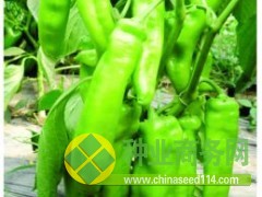 日本引入優(yōu)良雜交一代,早熟,粗長大羊角型,果實淺黃綠色,前期座果集中,后期不早衰,連續(xù)座果能力強,果長26-36cm左右,粗4-5cm左右,單果重100-150克左右,最大單果可達200克以上,辣味適中,抗病性強,商品性極佳,產(chǎn)量極高,適合春秋露地、拱棚和越冬大棚種植。