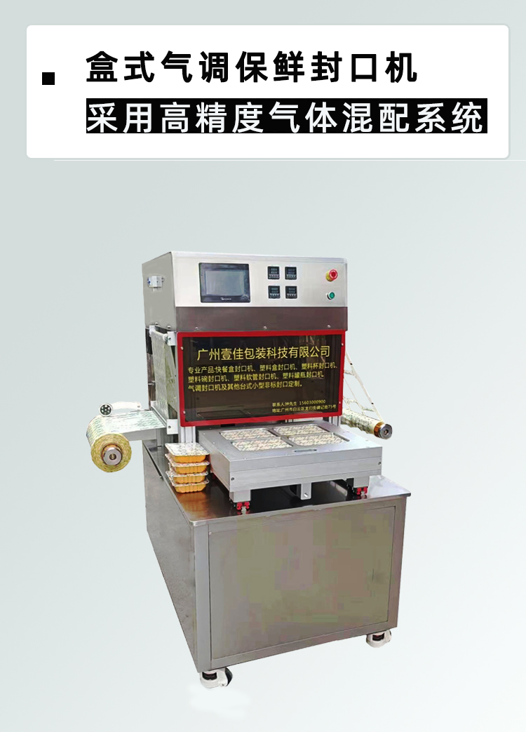 盒式氣調(diào)封口機(jī),采用高精度氣體混配系統(tǒng),可根據(jù)不同食品的保鮮需要,迅速轉(zhuǎn)換不同保鮮氣體的種類與混合比例,使所包裝的食品長時(shí)間保持原有的風(fēng)味和外觀,并在較大程度上抑制各種細(xì)菌與微生物的滋生,以達(dá)到客戶需求的保鮮效果。