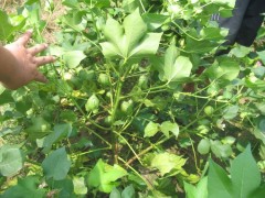二、葉面追肥:棉花生長到后期氣溫漸低,此期土壤施肥效果不好。如果缺氮肥,可葉面噴50~100倍的尿素液,每畝葉面噴施75公斤;若有缺磷鉀現(xiàn)象,可用300~500倍的磷酸二氫鉀噴施,噴1~2次,每次每畝75公斤。葉面噴施宜在晴天下午進行,陰天可全天進行,以防噴后水分蒸發(fā)過快濃度驟增而葉片受損。