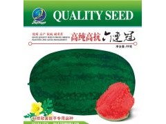 高抗枯萎病、耐重茬,特大果,中晚熟。重茬地正常年份5~6年種植基本不死苗,可適度連作或隔代種植。開花至成熟32天。皮色墨綠上覆深墨綠色條帶,橢圓形、瓤色大紅、肉質(zhì)甘甜酥脆。中心糖度13.5度。皮韌抗裂、耐貯運,單瓜重8~10公斤,大果可達(dá)28公斤,畝產(chǎn)6000公斤。適應(yīng)性廣,抗逆性強,適宜全國大部西瓜產(chǎn)區(qū)純作和間作套種,科技致富能手專用品種。