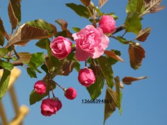 春季:幽香得深玫瑰紅色花蕾,開出芳香的深粉紅色花朵!花量大,繁花似錦,精彩壯觀!大重瓣如玫瑰花型是所有的北美海棠品種系列花型最大,觀賞效果最好的品種!先花后葉,盛花末后,初露的新葉,帶有微妙的酒紅色繼續(xù)裝扮多彩得春季。