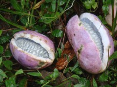 八月瓜又名八月炸,木通和三葉木通的果實(shí),野生果品。因八月果熟開(kāi)裂而得名。果形似香蕉,富含糖、維生素C和12種氨基酸,以及人體不能合成的纈基酸、蛋氨酸、異亮氨酸、苯丙氨酸、賴(lài)氨酸等。果味香甜,為無(wú)污染的綠色食品,有“土香蕉”之稱(chēng)。以居多。、等山麓谷地、林緣灌木叢中野生資源豐富。為上乘野果,現(xiàn)被有關(guān)部門(mén)列為重點(diǎn)開(kāi)發(fā)項(xiàng)目。