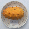 火參果原產(chǎn)于南非半干旱地區(qū),在美國(guó),澳大利亞,新西蘭等地都有種植。果實(shí)發(fā)育期為30-40天,植株長(zhǎng)勢(shì)旺,坐果性好。果實(shí)為橢圓體,有刺,外表獨(dú)特,類(lèi)似于刺海參,長(zhǎng)約12cm,直徑約8cm。生長(zhǎng)期時(shí)果皮亮綠色,完全成熟后果皮為金黃色。