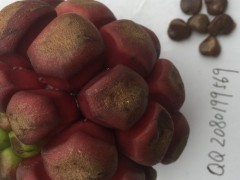 布福娜,學(xué)名黑老虎,為五味子科 ( 或木蘭科 ) 植物厚葉五味子的果,系木質(zhì)常綠藤本植物,原生于我國西南部原始森林,而現(xiàn)難覓其蹤跡。苗語“布福娜”,意思是美容長壽之果。近幾年經(jīng)過在北方部分地區(qū)引種試栽,成為一個(gè)選育而成的新品種,是集食用、藥用、綠化、觀賞于一體的新型水果,是一個(gè)急待開發(fā)而又具有開發(fā)潛力的多用途珍稀植物。 一、特征特性 1 、果大獨(dú)特:果型為聚合果,表面恰似足球,形狀新穎,,很奇特。果大有光澤,表紋象菠蘿,垂吊如燈籠;果徑 10 ~ 12 厘米,果重 600 克左右,大果可達(dá) 1200 克。幼果青綠色,成熟為深紅,色艷如花,珍奇可愛,這一大自然的獨(dú)特造形令人嘆為觀止。作矮化盆栽,更是天然杰出的一幅藝術(shù)佳作。 2 、風(fēng)味特佳:果肉象葡萄,漿多、味甜芳香;肉色如荔枝,乳白細(xì)膩;果香如蘋果,馥郁可人;色、香、味俱佳。觀之,使人賞心悅目;聞之,讓人唾津潛溢。市場銷售,價(jià)高而回頭客多。隨著人們對(duì)水果的要求越來越挑剔,姍姍來遲的布福娜會(huì)后來居上。 3 、早果豐產(chǎn):當(dāng)年苗定植后第二年即可掛果,第四年進(jìn)入盛果期。每畝可栽 110 株左右,每株結(jié)果 50 個(gè)左右,盛果期產(chǎn)量 4000 公斤。果實(shí) 10 月份成熟,成熟期晚,耐貯運(yùn)??稍跇浼苌狭糁链汗?jié)前后出售,也可摘下自然存放至翌年 3 ~ 4 月上市,成為淡季水果市場的佼佼者,屬反季節(jié)水果新品,發(fā)展?jié)摿Υ蟆?nbsp;4 、生長旺盛:抗逆性強(qiáng),幾乎無病蟲害,果實(shí)能達(dá)到綠色食品的質(zhì)量要求。春季定植的苗,當(dāng)年主蔓可達(dá) 3 米。莖蔓繁茂,葉片終年翠綠。晶瑩可鑒,遮陰效果好。既可作園林配置,又可作露地餐廳、長廊、棚架等的頂面綠化。 5 、適應(yīng)性強(qiáng):布福娜植株喜光而又耐陰,好溫暖而又耐寒,經(jīng)國內(nèi)南北多點(diǎn)種植,均表現(xiàn)良好。在保持品質(zhì)不變的同時(shí),均表現(xiàn)出不擇土壤,粗生易長,但以偏酸性的沙壤土更好。成年樹能耐 40 度以上高溫和零下 20 度嚴(yán)寒。無論山區(qū)、丘陵、平原均可種植,這是從大的區(qū)域來說的,具體到某一地區(qū),可先試種,再擴(kuò)大。在北方如果冬季氣溫低于零下 20 度,最好壓埋,或噴防凍液或采取保護(hù)措施。更適應(yīng)于栽于果林、經(jīng)濟(jì)林或房前屋后樹林之下,既可借用果樹枝干作纏附棚架,又不影響果樹的產(chǎn)量,或在布福蔓行間套種四季草莓,是實(shí)現(xiàn)“雙季果園”的首選品種。也是高效農(nóng)業(yè)、觀光農(nóng)業(yè)的最佳品種之一。 6 、藥用價(jià)值:據(jù)侗族藥醫(yī)介紹,布福蔓是一種食藥兩用佳果,不僅果實(shí)可食用、味美香甜,從根到葉均可入藥,具有清熱解毒、祛風(fēng)活絡(luò)、調(diào)氣止痛、清肝明目、益腎固精、補(bǔ)血養(yǎng)顏等功能。實(shí)屬我國的一種珍稀果品,開發(fā)種植布福蔓具有良好的經(jīng)濟(jì)效益和社會(huì)效益,是廣大林農(nóng)果友發(fā)家致富奔小康的選擇項(xiàng)目。 二、管理措施技術(shù) 布福娜常規(guī)管理與葡萄相似,但較葡萄粗放,病蟲害較少。需搭架以供攀纏,為確保穩(wěn)產(chǎn)、豐產(chǎn),在花期最好進(jìn)行人工授粉。根據(jù)植株大小進(jìn)行疏花、疏果,以保證果子的品質(zhì)。布福娜須根較多而分布較淺,因而施肥不宜太深。以弱酸性的砂壤土種植,且常保持土壤濕潤。 1 .園地選擇。“布福娜”對(duì)土壤要求不嚴(yán),一般能栽桃、李、棗、柿、梨、蘋果、葡萄、枇杷的土壤可種植,但以偏酸性的沙壤適宜。 2 .栽培方式和時(shí)間。布福娜是藤本植物,既可采取棚架式栽培,也可用籬架式栽培或盆栽。棚架每 667 平方米可植 120 株左右,株行距 2 米 X3 米;籬架每 667 平方米可植 300 株左右,株行距 1 米 X2 米。南方可在 12 月至翌年 3 月定植,北方可在春季 3-4 月定植。 3 .雌雄株搭配。布福娜屬雌雄異株植物,栽培時(shí),要按雌株與雄株 9 : 1 的比例配栽,有利于異花授粉,也可在花期進(jìn)行人工授粉,提高產(chǎn)量。 4 .栽培方法。布福娜的須根較多,且多分布在較淺的土層。因此,山地、丘陵種植時(shí),打穴不必太深,以長、寬各 0 . 6 米,深 0 . 5 米為宜;平原、菜園地、水稻田不需打穴、挖溝,采用起壟種植。 5 .肥水管理。每 667 平方米用 2000 公斤農(nóng)家肥和 100 公斤鈣鎂磷混勻作底肥;追肥時(shí),要薄肥勤施,施發(fā)酵腐爛的餅肥和農(nóng)家肥;未掛果幼苗半月施肥 1 次,以氮肥為主;掛果后 10 天左右施肥 1 次,以磷、鉀肥為主。 6 .修剪技術(shù)。修剪一般在冬季開花前 1 個(gè)月進(jìn)行。一方面,修剪多余枝條;另一方面,剪掉冬季花蕾。棚架式栽培一般不需修剪,籬架式或盆栽式均要修剪,以控制樹型、保障產(chǎn)量 ( 布福娜主枝是營養(yǎng)枝,是控制樹型的枝蔓;側(cè)枝是結(jié)果枝,是控制果實(shí)的枝蔓 ) 。 7 .病蟲害的防治。抗病力強(qiáng),主要有白蟻危害根部,尺蠖危害葉和花蕾。 布福娜種子 黑老虎種子 冷飯團(tuán)種子 藤剛精 冷飯團(tuán) 菠蘿葡萄