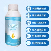 1、本品采用離子聚合技術和微分子成膜技術,特別添加生物多酶,噴施到作物葉片和果實上,可以形成致密保護膜層,可折射紫外線、紅外線,又