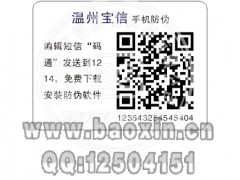 本產(chǎn)品"二維碼標(biāo)簽"采用了版紋防偽技術(shù)印刷 。二維碼也叫二維條碼,是在水平和垂直方向的二維空間存儲(chǔ)信息的條形碼。目前廣泛運(yùn)用于郵政、物流、倉(cāng)儲(chǔ)、零售、電信、航空、水陸路運(yùn)輸、稅務(wù)、海關(guān)、保險(xiǎn)、銀行等各行各業(yè)的終端管理系統(tǒng)。具有成本低,操作便捷,便于查詢,出錯(cuò)率低的眾多優(yōu)勢(shì)。二維碼在亞洲日本和韓國(guó)應(yīng)用相當(dāng)廣泛,國(guó)內(nèi)也正在興起,溫州寶信科技有限公司是目前國(guó)內(nèi)為數(shù)不多的能夠印刷二維碼印刷的企業(yè),歡迎各界朋友來電洽談。