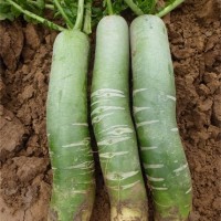 上乘精品濰縣蘿卜,個(gè)高六寸,直徑寸半,其櫻葉綠色,外皮黑綠色,尾部白色,內(nèi)瓤青綠,絕無白糠花,清香,汁多且甜,皮微辛,甚是可口。濰縣蘿卜既可做蔬菜,也可生食。做菜凡炒、拌、燉、腌均可,為當(dāng)?shù)厍铩⒍?、春三季主要蔬菜之一。?jīng)常食用有去痰、清熱解毒、健脾理氣、助消化等功能。當(dāng)?shù)赜?ldquo;吃蘿卜喝茶,不用找醫(yī)生把藥拿”之說,濰縣蘿卜含有大量維生素,確有保健作用。又有“吃蘿卜喝茶,氣的大夫蹽街爬”的戲言, 也道出了濰坊蘿卜的醫(yī)用功效。
