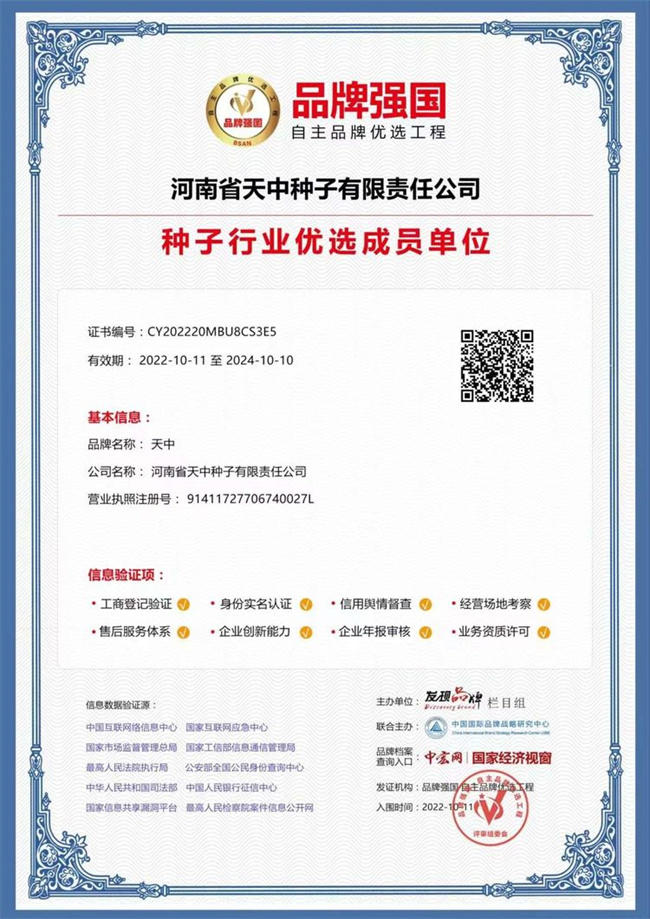 河南省天中種子有限責(zé)任公司是一家集科研、生產(chǎn)、加工、銷售、服務(wù)于一體的現(xiàn)代化股份制高新種子企業(yè)。注冊(cè)資金3000萬元,占地30余畝。公司員工36人,其中農(nóng)藝師11人,市拔尖人才1人,國務(wù)院特殊津貼專家1人。公司擁有占地300余畝的天中種業(yè)園和天中種業(yè)新品種研發(fā)中心。公司自成立以來,多次受到省市領(lǐng)導(dǎo)和上級(jí)主管部門的表彰。連續(xù)多年被評(píng)為“誠信單位”、“農(nóng)業(yè)產(chǎn)業(yè)化市重點(diǎn)龍頭企業(yè)”。 公司主推品種國審航星708、國審名鼎26、國審天中378、國審航星188、國審小麥品種天中麥7號(hào),后續(xù)國審大品種勁玉699、HS207、YJ2025、航碩308、航碩178、天中177等等!