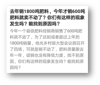 很多基層種子經(jīng)銷商,為了獲得1倍以上的利潤(rùn),“賣種子又賣復(fù)合肥”,結(jié)果呢?這樣的人,幾乎沒(méi)有發(fā)財(cái)?shù)?,因?yàn)樗ㄋ┟媾R著“種子銷量下滑,化肥銷量也下滑”。