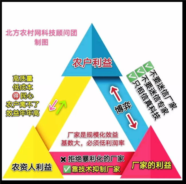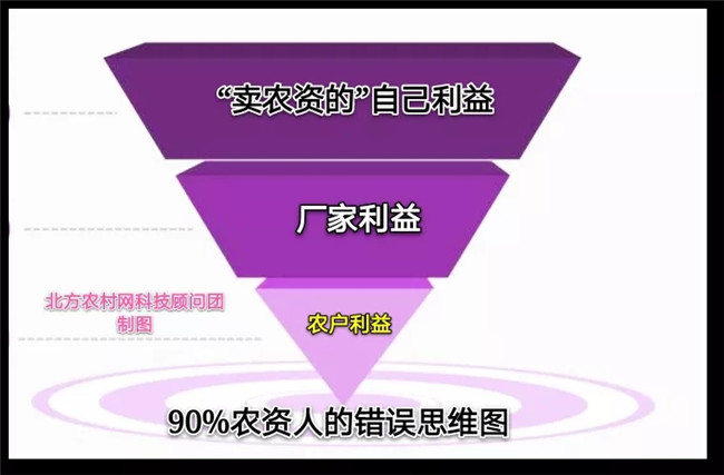 上圖為90%人的農(nóng)資人錯(cuò)誤的思維示意圖。下圖是正確的“正三角關(guān)系”。