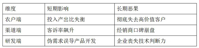 農(nóng)戶連年使用后效果遞減,導(dǎo)致農(nóng)戶信任崩塌。