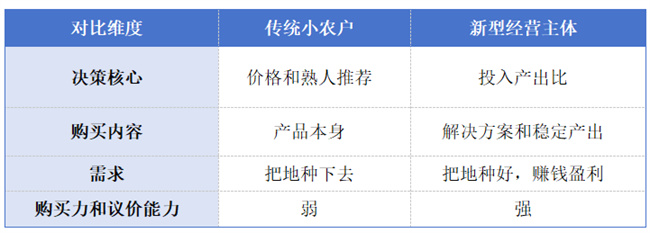 在用戶結(jié)構(gòu)變遷的同時(shí),需求內(nèi)核也發(fā)生了質(zhì)的飛躍。這集中體現(xiàn)在“傳統(tǒng)小農(nóng)戶”與“新型經(jīng)營主體”的鮮明對(duì)比上。