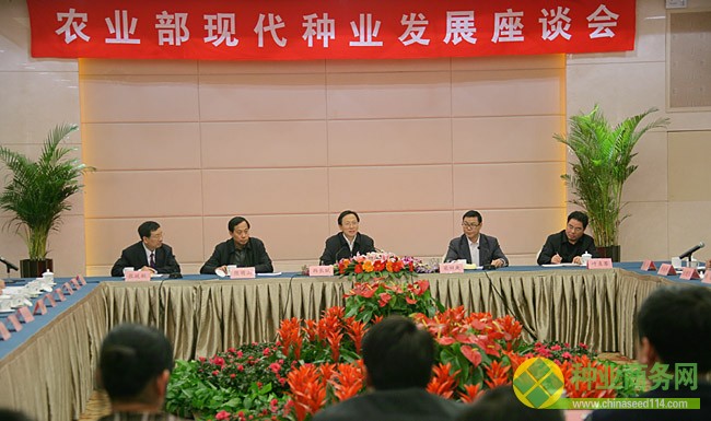 農(nóng)業(yè)部黨組成員、中國種子協(xié)會會長梁田庚主持了座談會,農(nóng)業(yè)部總經(jīng)濟(jì)師陳萌山等出席會議。中國種子集團(tuán)、北京金色農(nóng)華、中國農(nóng)科院作物所等單位和北京、甘肅、遼寧、四川等?。ㄊ校┑拇碜髁税l(fā)言。
