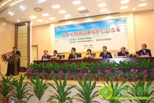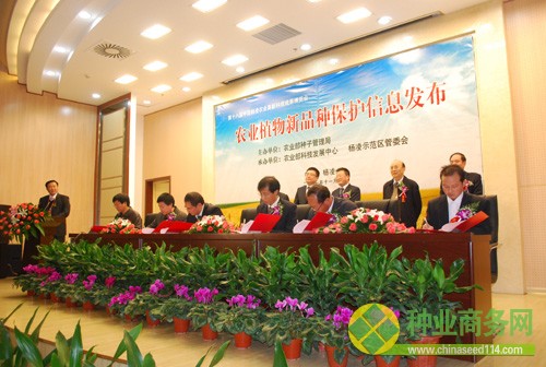 為了進一步宣傳我國多年來開展植物新品保護工作的主要成就,鼓勵培育和使用植物新品種,加快植物新品種的推廣。2011年11月5日下午,由農(nóng)業(yè)部種子管理局主辦、農(nóng)業(yè)部科技發(fā)展中心和楊凌示范區(qū)管委會承辦的農(nóng)業(yè)植物新品種信息發(fā)布活動在楊凌農(nóng)高會C館(國際館)多功能會議室隆重召開。農(nóng)業(yè)部種子管理局副局長馬淑萍,農(nóng)業(yè)部科技發(fā)展中心副主任劉平,中國種子協(xié)會副會長兼秘書長李立秋,陜西省人民政府副秘書長胡小平,陜西省農(nóng)業(yè)廳副廳長白宜勤,楊凌示范區(qū)黨工委書記、西北農(nóng)林科技大學(xué)黨委副書記梁桂出席。信息發(fā)布會由農(nóng)業(yè)部種子管理局品種管理處處長呂波主持。