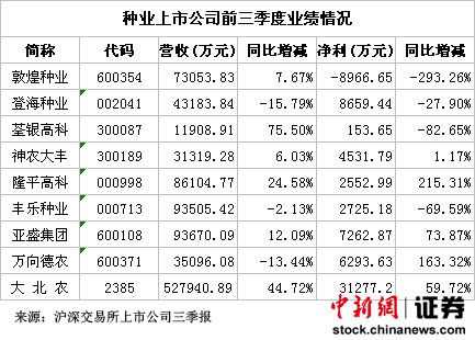 敦煌種業(yè)最為“悲催”。根據(jù)農(nóng)業(yè)部通報(bào),敦煌種業(yè)是被抽查初不合格種子品種最大的種業(yè)上市公司。而在三季報(bào),9家種業(yè)上市公司中,僅敦煌種業(yè)一家出現(xiàn)巨額虧損,導(dǎo)致業(yè)績(jī)同比下滑近三倍。