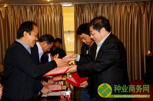 農(nóng)業(yè)部科教司巡視員王衍亮向大豆專家頒發(fā)了重點實驗室學(xué)術(shù)委員會委員聘書。