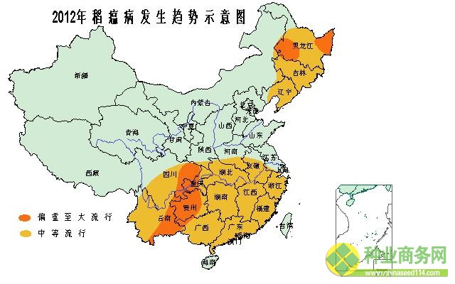 2011年12月5日至7日,全國農(nóng)業(yè)技術(shù)推廣服務(wù)中心召開全國農(nóng)作物重大病蟲害發(fā)生趨勢會商會,組織生產(chǎn)、科研、教學(xué)等單位的近百名專家,會商分析了2012年農(nóng)作物重大病蟲發(fā)生趨勢。預(yù)計2012年全國農(nóng)作物重大病蟲害總體呈重發(fā)態(tài)勢,全國病蟲害發(fā)生總面積約為55億畝次,同比增加4%。其中,水稻“兩遷”害蟲、小麥條銹病、玉米螟等總體發(fā)生程度重于2011年;二點委夜蛾在黃淮海夏玉米產(chǎn)區(qū)大部偏重發(fā)生,若幼蟲發(fā)生高峰期與玉米苗期吻合,仍有暴發(fā)可能;東亞飛蝗、西藏飛蝗、亞洲飛蝗、草地螟總體程度與2011年相當(dāng);稻瘟病在東北和西南稻區(qū)、小麥赤霉病在江淮麥區(qū)、馬鈴薯晚疫病在西南高風(fēng)險發(fā)生區(qū)和西北常發(fā)區(qū)均存在大面積流行的威脅。具體預(yù)報如下: