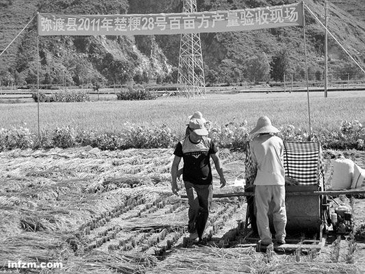 10月10日,昆明市農(nóng)業(yè)局宣布,在該市嵩明縣種植的112畝水稻“云光109”通過了農(nóng)業(yè)部驗(yàn)收,平均畝產(chǎn)達(dá)到970公斤。
