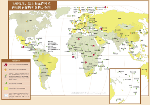 全球管理、禁止和允許種植轉(zhuǎn)基因農(nóng)作物和食物分布圖