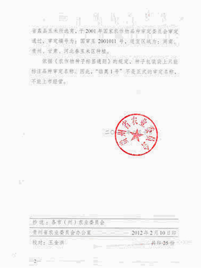貴州界定“臨奧1號(hào)”非正式審定名稱不得上市