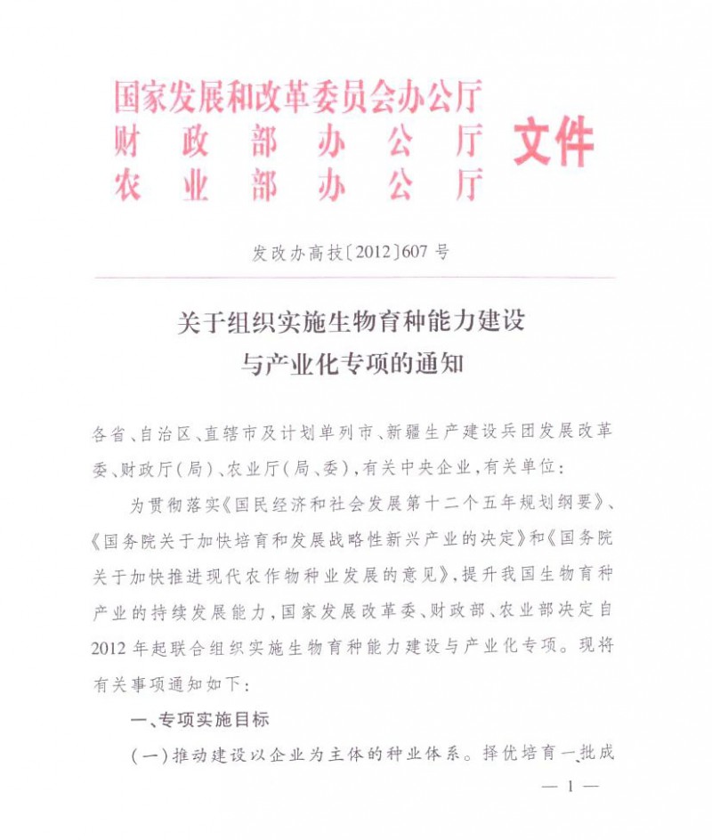 關(guān)于組織實(shí)施生物育種能力建設(shè)與產(chǎn)業(yè)化專項(xiàng)的通知