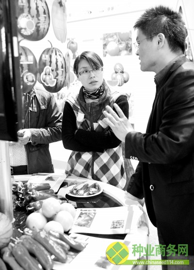 圖片說明:種業(yè)博覽會上,購種者和商家在一起交流。徐勇/CFP