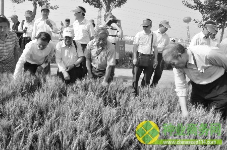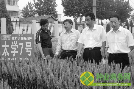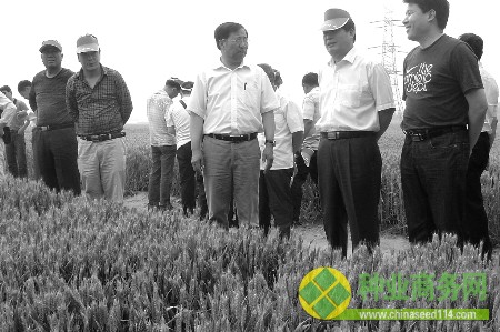 5月19日,新麥26觀摩產(chǎn)+銷會(huì)議在新鄉(xiāng)召開,新鄉(xiāng)農(nóng)科院培育的優(yōu)質(zhì)強(qiáng)筋小麥品種新麥26被列為黃淮冬麥區(qū)主導(dǎo)品種。觀摩會(huì)上來自農(nóng)業(yè)部、中國(guó)農(nóng)科院的專家、院士、領(lǐng)導(dǎo)及全國(guó)多省的農(nóng)業(yè)科技人員,大型面粉企業(yè)、中儲(chǔ)糧集團(tuán)等糧食收購(gòu)部門代表600多人觀看了超強(qiáng)筋小麥新麥26,并對(duì)小麥優(yōu)質(zhì)穩(wěn)定性、高產(chǎn)性給予了較高的評(píng)價(jià)。圖為全國(guó)農(nóng)技中心副主任鄧光聯(lián)(左一),院士程順(左二)和全國(guó)小麥中心副主任郭天財(cái)(左三),中國(guó)農(nóng)科院副院長(zhǎng)、院士劉旭(右一)在觀看新麥26的豐產(chǎn)長(zhǎng)勢(shì)。 本報(bào)記者 孫志剛 攝