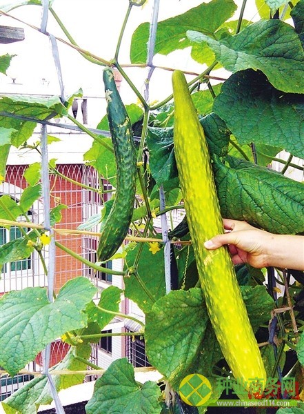 家住鳳凰山附近的鄭女士喜歡在自家的露臺(tái)上種植各種蔬菜,她種植蔬菜有自己的一套。為了讓蔬菜有足夠的營(yíng)養(yǎng),早在去年8月份,鄭女士就找來多種家禽的糞便,混合在露臺(tái)上的泥土里,等著來年種黃瓜。今年2月份,鄭女士到天九灣市場(chǎng)花一塊錢購買了一包普通的黃瓜種子,隨后在自家露臺(tái)上播種,長(zhǎng)出8棵黃瓜苗。