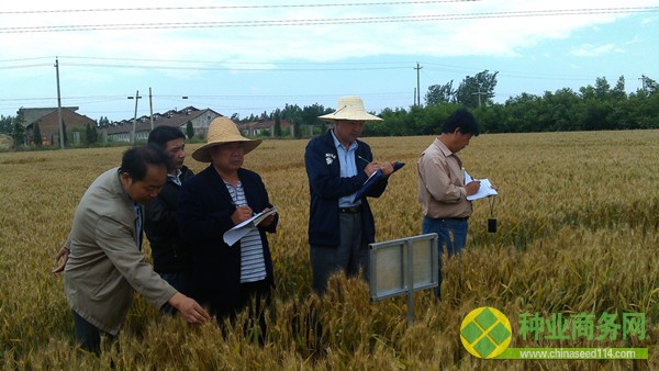 專家現(xiàn)場(chǎng)考評(píng)小麥生產(chǎn)試驗(yàn)品種