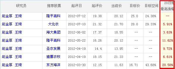 申銀萬國趙金厚曾獲得新財(cái)富2011年農(nóng)業(yè)金牌分析師第三名的成績(jī),他推薦個(gè)股頻率密集且成功率高,投資者可密切關(guān)注。