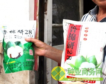 7月9日,本報《高唐3000多畝抗蟲棉蟲災泛濫》報道了高唐縣多個鄉(xiāng)鎮(zhèn)的抗蟲棉棉田遭遇蟲災。記者調(diào)查得知,發(fā)生蟲災的地塊用的都是臨清一種子公司生產(chǎn)的“魯棉研28”,棉農(nóng)懷疑遭遇偽劣種子。棉農(nóng)用的棉種是不是“魯棉研28”,若是,蟲害為什么如此嚴重,若不是,袋子里到底是什么品種,記者對上述問題展開了調(diào)查。高唐匯鑫街道辦事處谷官屯村經(jīng)銷商王長立承認村民們種植的“魯棉研28”是從他那里購得的。記者調(diào)查得知,王長立今年銷售的“魯棉研28”有兩種包裝,根據(jù)包裝袋的顏色,農(nóng)民分別稱之為綠袋和白袋。兩種袋子上標注的生產(chǎn)企業(yè)分別為臨清黎明種業(yè)和山東德盛種業(yè),二者種子的產(chǎn)地均為臨清市。