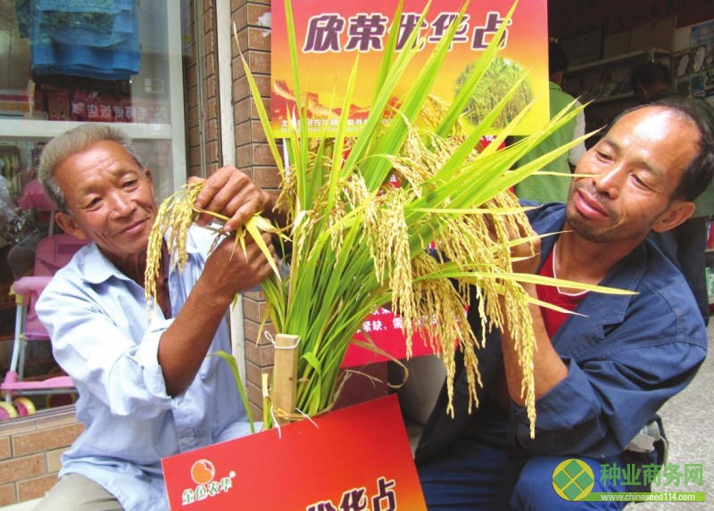 8月23日,新寧縣城一家農(nóng)資種子店門前,兩名農(nóng)民正在仔細觀看一個高產(chǎn)雜交水稻品種飽滿的谷穗。為了讓農(nóng)民買到高產(chǎn)、放心的水稻種子,這家農(nóng)資店別出心裁,將優(yōu)質高產(chǎn)雜交水稻谷穗實物從田間搬到店前,并與購種農(nóng)民簽訂承諾書,此舉受到農(nóng)民朋友的歡迎。