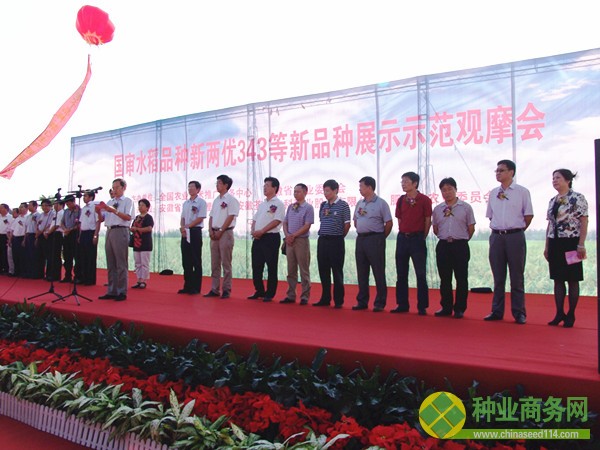 為促進(jìn)育種科研成果轉(zhuǎn)化、加快水稻優(yōu)良新品種推廣,全國農(nóng)技中心于8月26日在安徽合肥舉辦了國審水稻品種新兩優(yōu)343等新品種示范觀摩會,來自安徽、江蘇、浙江、福建、江西、湖北、湖南、廣東、廣西、四川等省種子管理站(局)、科研單位代表,中國水稻研究所,有關(guān)省農(nóng)技推廣機(jī)構(gòu)、種子企業(yè)、種糧大戶以及新聞媒體的代表近200人參加了本次活動。會議由全國農(nóng)技中心品種區(qū)試處谷鐵城處長主持,農(nóng)業(yè)部種子管理局馬淑萍副局長應(yīng)邀出席觀摩會,全國農(nóng)技中心鄧光聯(lián)副主任、安徽省農(nóng)委王華副主任、安徽省肥西縣胡平副縣長以及安徽荃銀高科種業(yè)股份有限公司張琴董事長和陳金節(jié)總經(jīng)理分別出席并致辭。