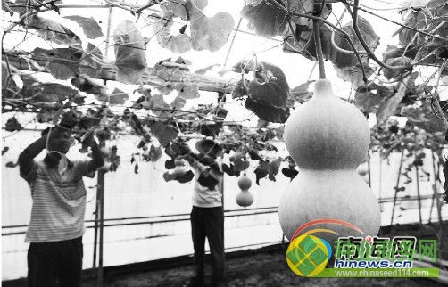 一個高達70厘米的深綠色大葫蘆穩(wěn)穩(wěn)地吊在藤上(見圖,本報記者宋國強攝),沿著綠油油的藤蔓望過去,大小不一的葫蘆長得十分結實。輕輕觸碰,仿佛時刻會從里面蹦出一個會百般武藝的“金剛葫蘆娃”……這不是普通的葫蘆,而是搭載過“神舟五號”遨游過太空的“航天大葫蘆”。