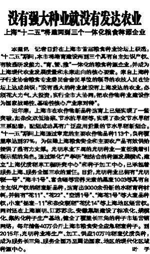 本報(bào)訊 記者日前在上海市首屆糧食種業(yè)論壇上獲悉,“十二五”期間,本市將培育建設(shè)兩到三個具有自主知識產(chǎn)權(quán)、有較強(qiáng)研發(fā)能力、“育、繁、推”一體化的糧食種源企業(yè),并成為上海現(xiàn)代農(nóng)業(yè)發(fā)展質(zhì)量和未來走向的核心要素。來自上海種子行業(yè)協(xié)會糧食專業(yè)委員會會員單位的領(lǐng)導(dǎo)的農(nóng)技人員在論壇上達(dá)成共識:“沒有強(qiáng)大的種業(yè)就沒有上海發(fā)達(dá)的農(nóng)業(yè),必須花大力氣、大投資,實(shí)行全市大協(xié)同,把農(nóng)作物種業(yè)建設(shè)作為國家戰(zhàn)略性、基礎(chǔ)性核心產(chǎn)業(yè)來對待”。