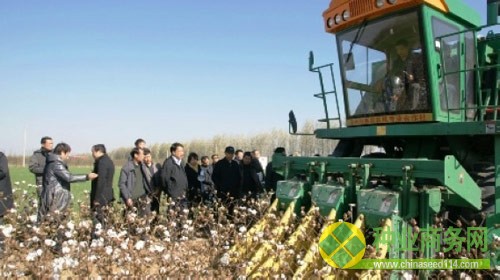 十一月十一日由河南省農(nóng)業(yè)機(jī)械技術(shù)推廣站組織的“河南省棉花機(jī)收試驗(yàn)演示會”在河南省黃泛區(qū)農(nóng)場召開,河南省農(nóng)業(yè)機(jī)械管理局張開倫局長、李明枝助理巡視員、程雙進(jìn)副局長親臨現(xiàn)場觀看,參加會議的有河南省農(nóng)機(jī)局有關(guān)處、室、站主要負(fù)責(zé)人,周口、南陽、商丘、開封及棉花種植大縣農(nóng)機(jī)管理、推廣部門負(fù)責(zé)人,黃泛區(qū)農(nóng)場有關(guān)負(fù)責(zé)人、技術(shù)人員80余人。中航貴州平水農(nóng)機(jī)裝備有限公司研制的三行棉花收獲機(jī)到現(xiàn)場作演示。