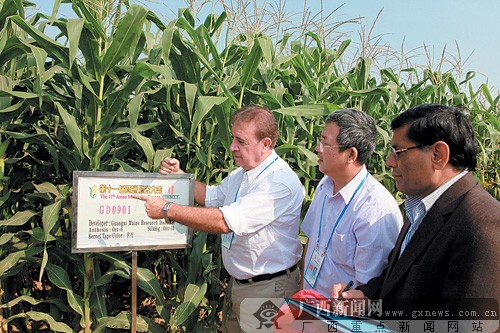 去年舉行的亞洲玉米大會(huì)上,廣西自主培育出來(lái)的玉米新品得到了外國(guó)朋友的好評(píng)。陸建勛攝