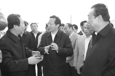 省農(nóng)牧廳廳長(zhǎng)武文斌、副廳長(zhǎng)楊祁峰、省種子管理局局長(zhǎng)常宏陪同農(nóng)業(yè)部部長(zhǎng)韓長(zhǎng)賦考察國(guó)家級(jí)玉米制種基地建設(shè)情況。
