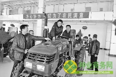 鐵力市王楊鄉(xiāng)紅光村農(nóng)民魏巧云和幾個鄉(xiāng)親到該市農(nóng)資農(nóng)機種子綜合大市場選購農(nóng)機。 肖民弼 本報記者 馬少忠攝