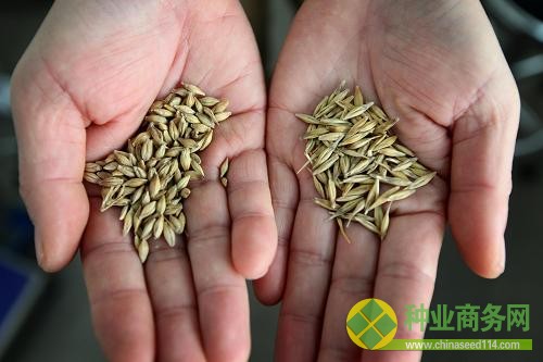 這是江蘇省農(nóng)科院農(nóng)業(yè)種質(zhì)中期庫(kù)保存的兩種大麥,左為“二棱大麥”,多用于釀酒;右為“六棱大麥”,多用于制作飼料(1月16日攝)。新華社發(fā)(夏羿 攝)